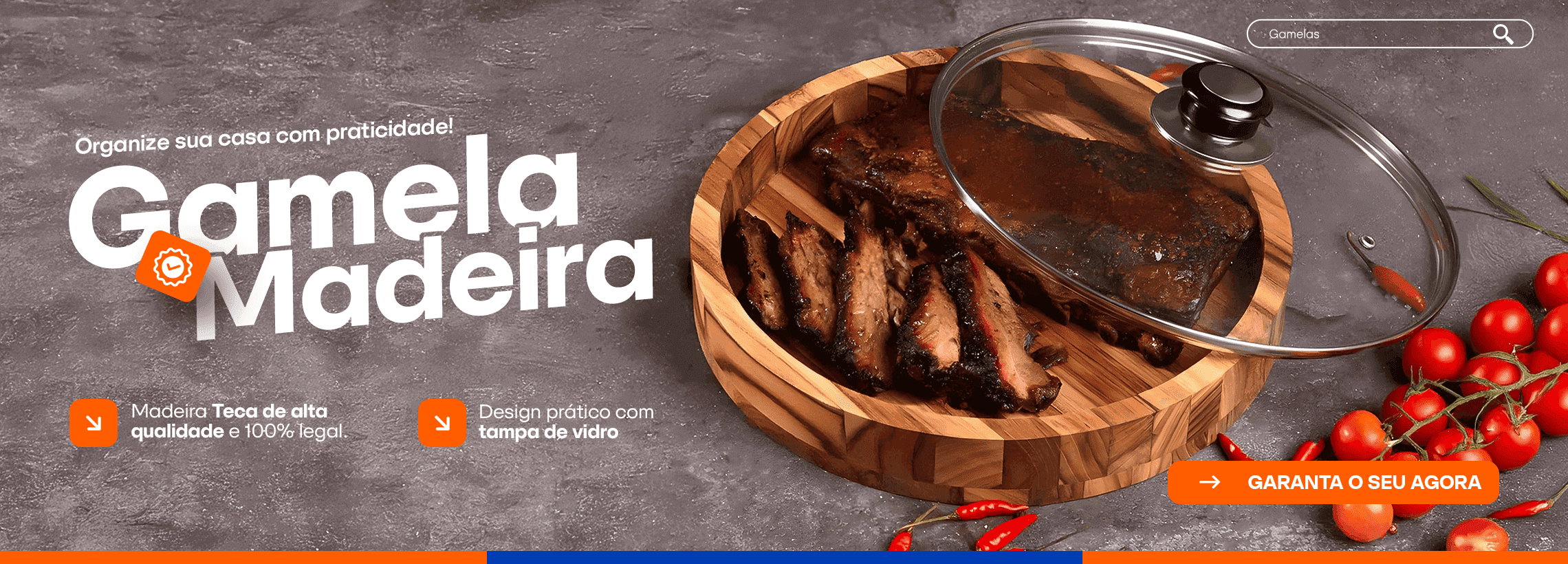 Gamela de Madeira Redonda com Tampa de Vidro Linha Premium 30cm - Madeira Teca Nobre