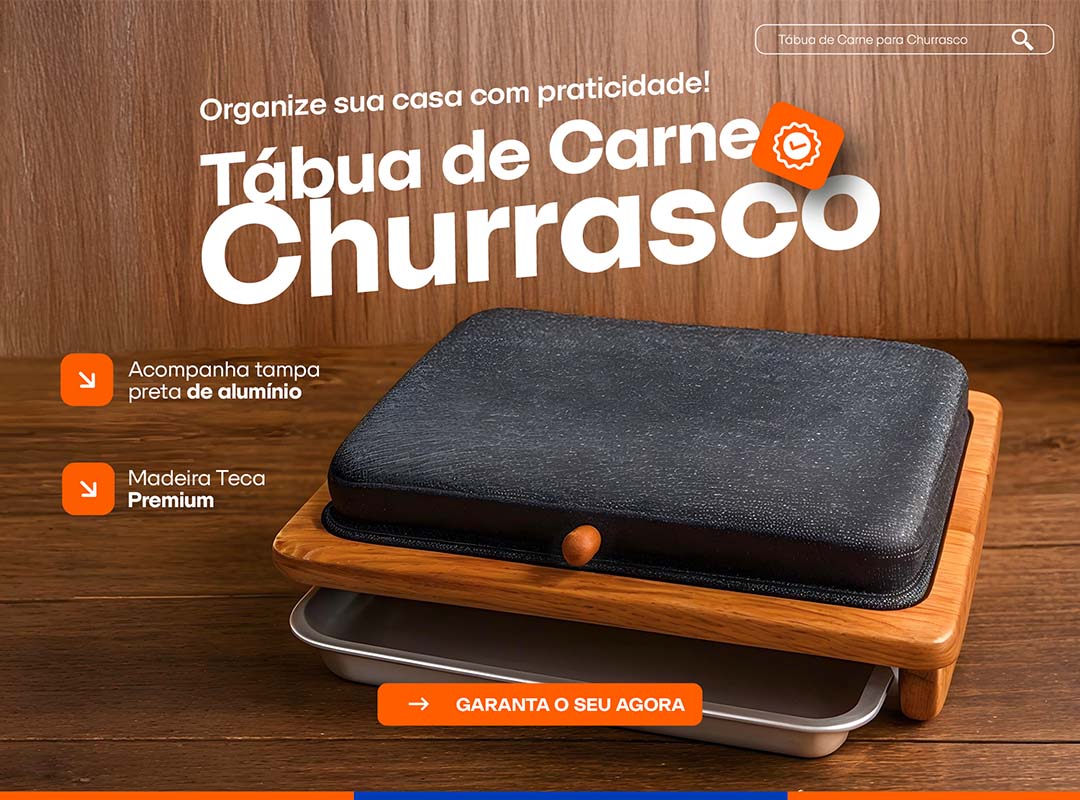 Tábua de Carne para Churrasco com Tampa e Forma Grill - Madeira Teca 39/43cm
