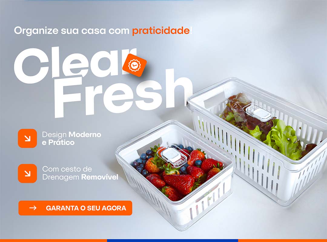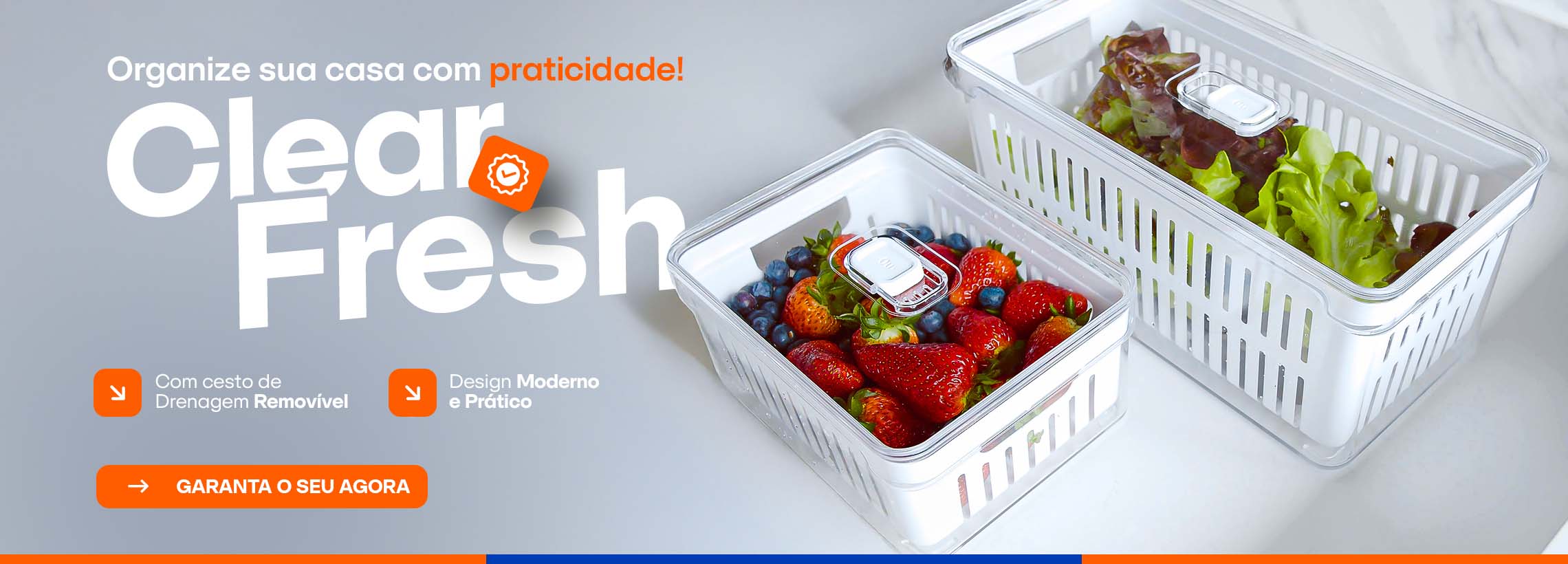 Organizador de Geladeira Acrílico 5L com Tampa e Bandeja – OU Clear Fresh | Ideal para Alimentos e Verduras