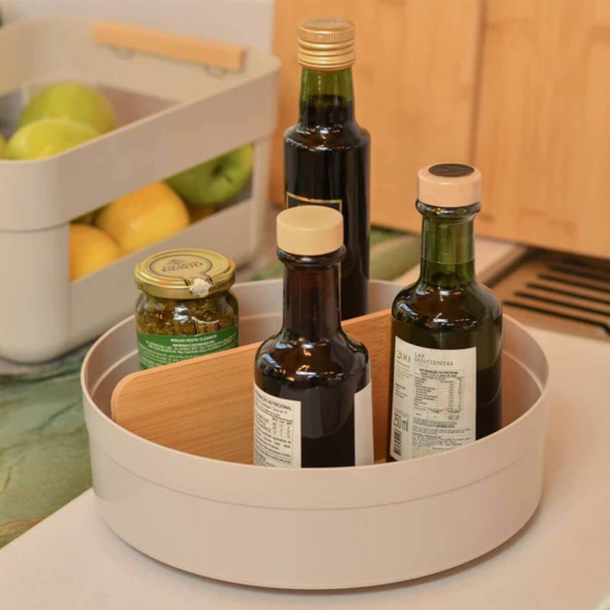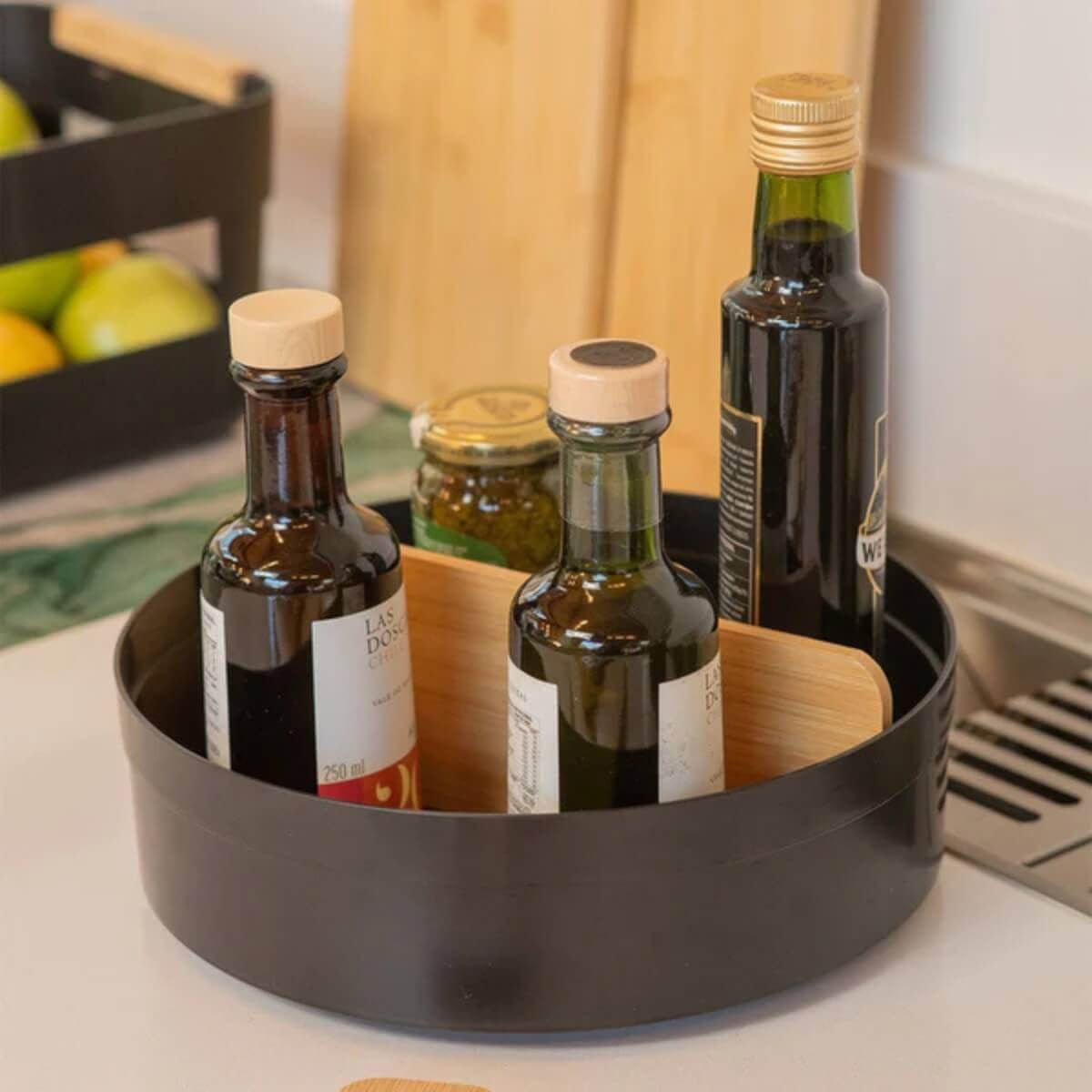 Organizador Giratório 360° com Divisória em Bambu – 25,5 cm