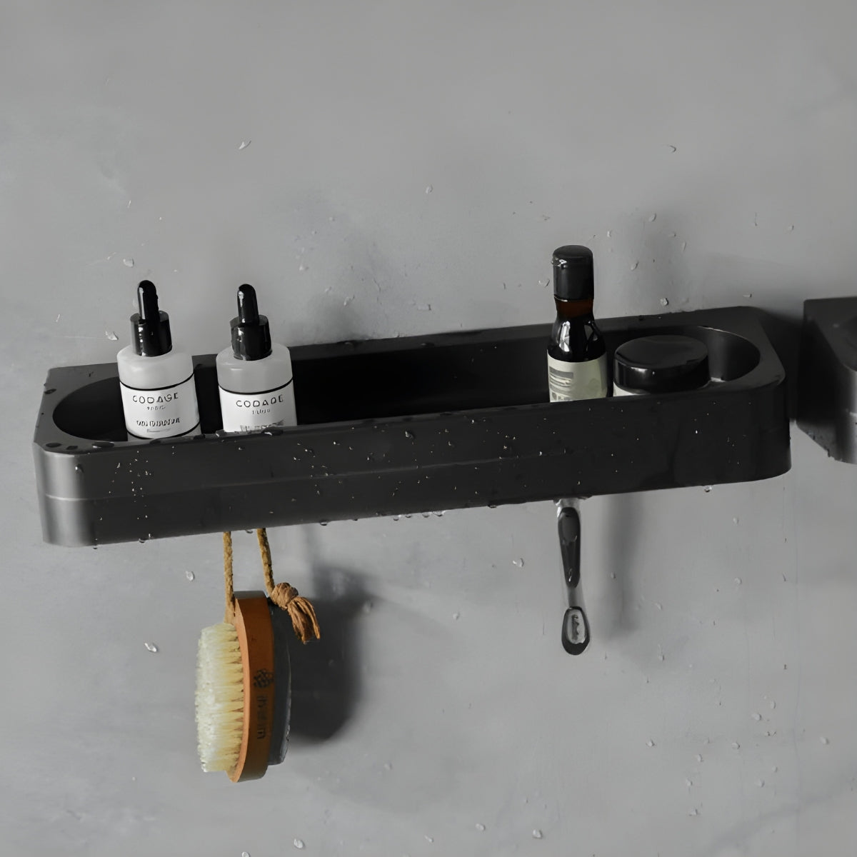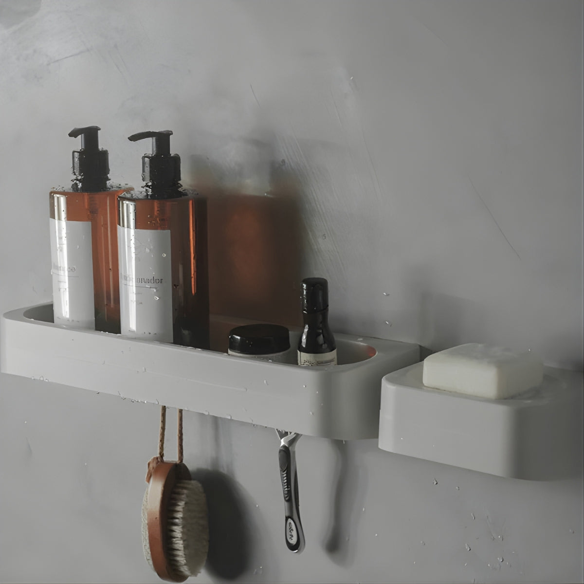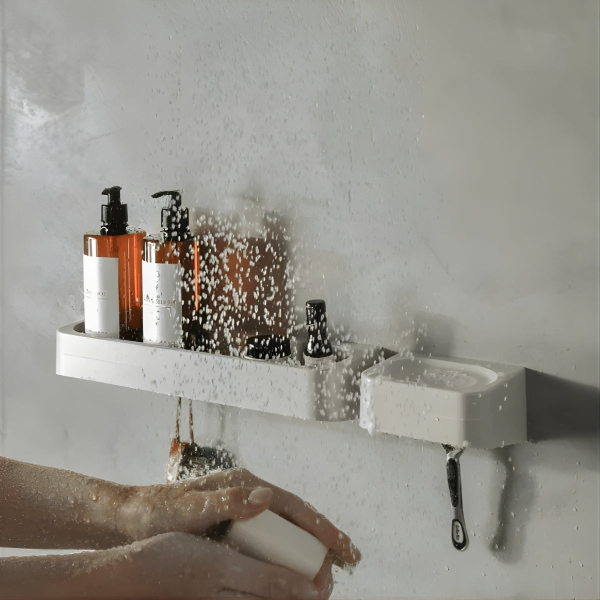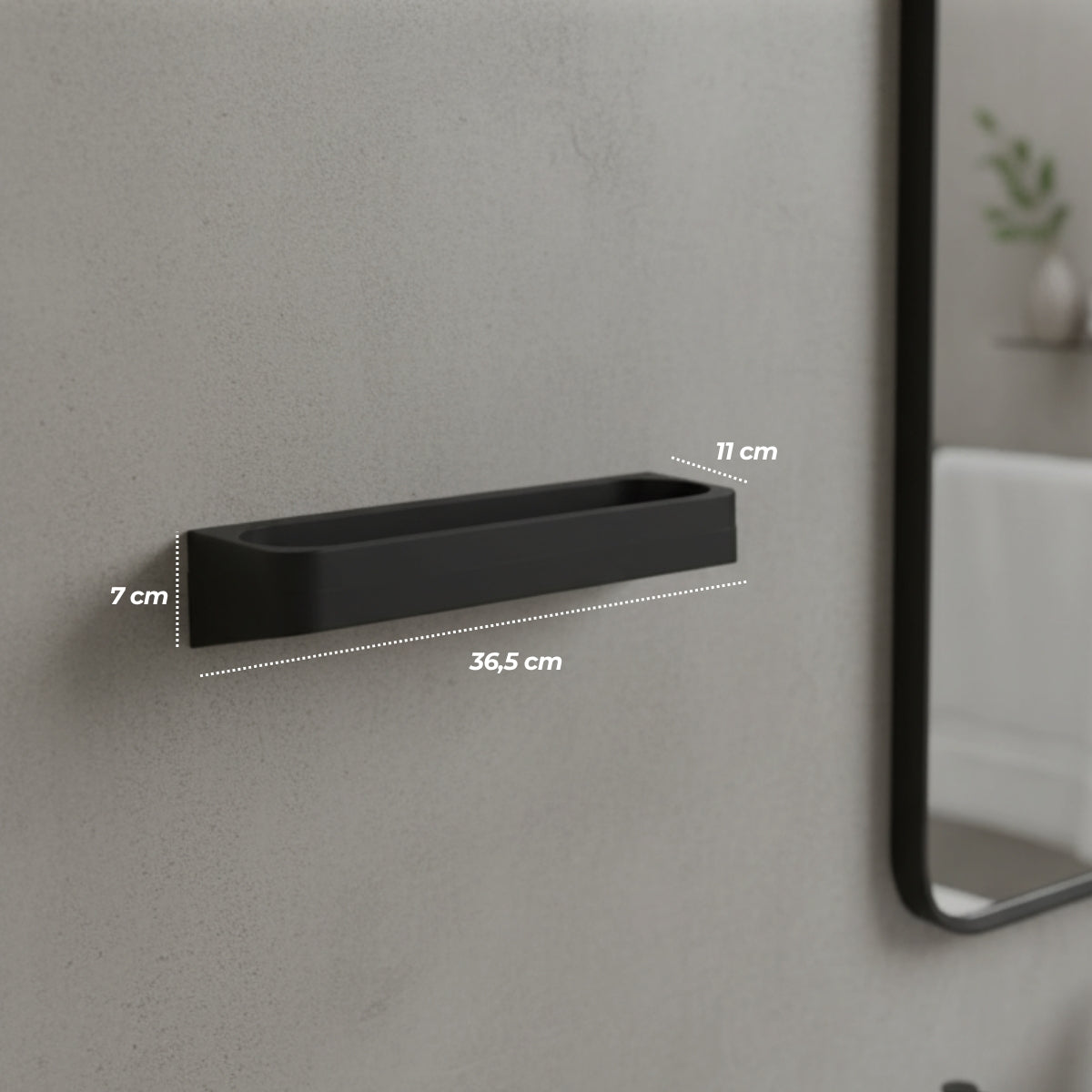 Com 36,5 cm de comprimento, a prateleira comporta diversos frascos e produtos, enquanto o rebaixo integrado evita quedas.
