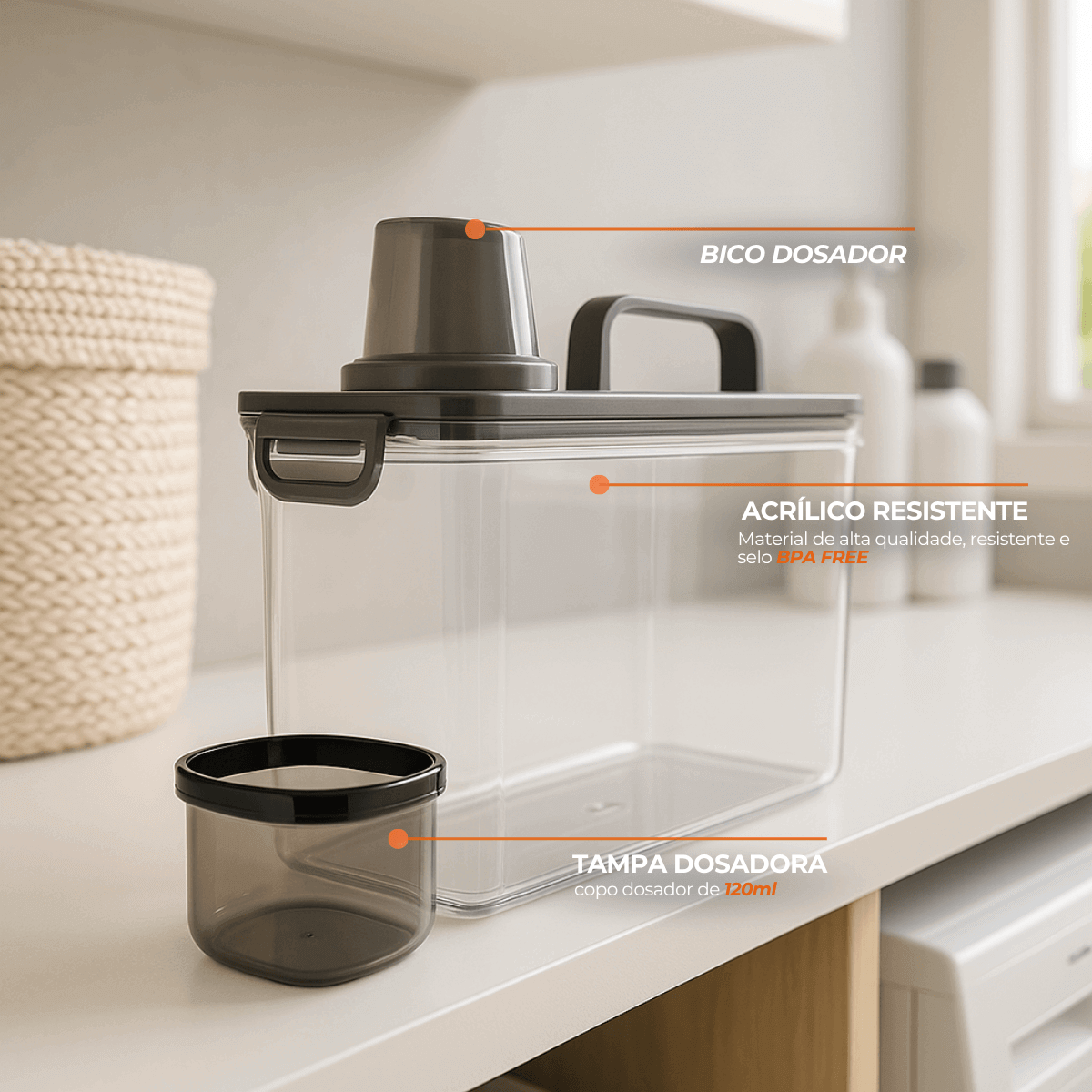 Com design moderno e capacidade ideal, ele garante praticidade no dia a dia — seja para armazenar sabão líquido, detergente, azeite, sucos ou cereais.